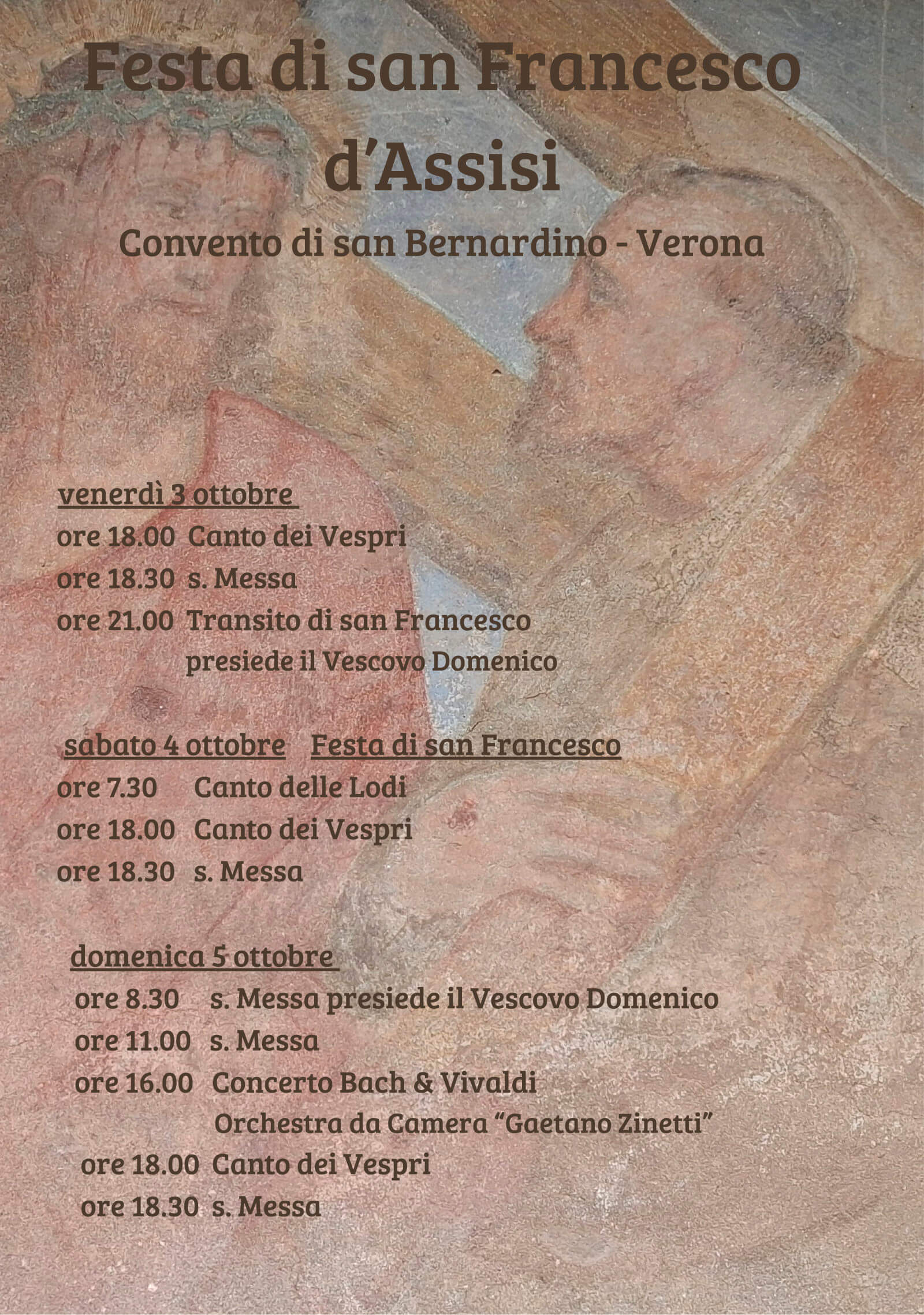 ore 21.00      Transito di san Francesco – presiede il Vescovo Domenico